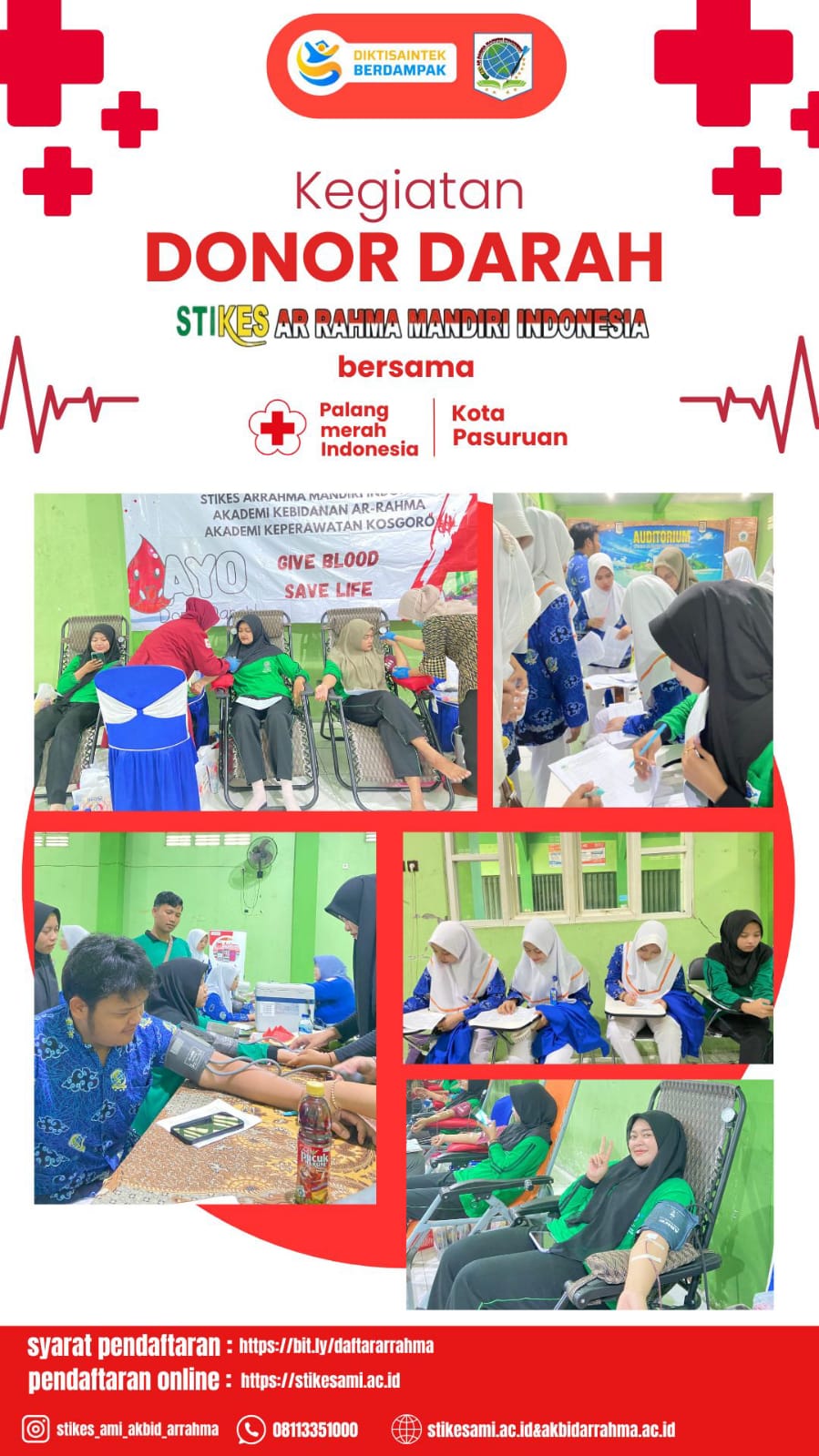 Kegiatan donor darah ini menunjukkan komitmen STIKES Arrahma Mandiri Indonesia dalam meningkatkan kesadaran akan pentingnya donor darah dan mendukung ketersediaan stok darah untuk pasien yang membutuhkan. PMI Kota Pasuruan sebagai organisasi kemanusiaan yang berdedikasi dalam pelayanan donor darah, siap membantu dan mendukung kegiatan ini.